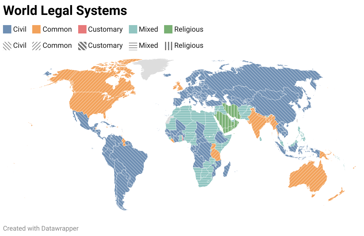Every nation has a unique legal system that reflects its history, culture, and government structure. Along with the civil and common law traditions, religious law plays a role in many parts of the world. This map offers a basic overview of the world’s judicial systems, including legal tradition, highest court, and selected features. More information about nations not included in the Country Profiles section will be added over time.